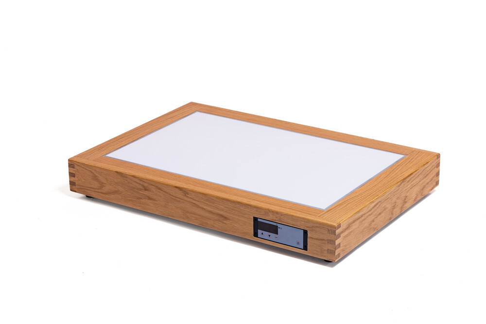 Dalia elektrisk varmeplade, men hvid glasplade og en flot ramme i egetræ . Størrelse GN 1/1.