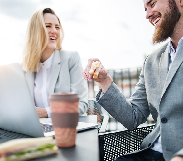 Medarbejderne sidder i løbet af arbejdsdagen i forskellige teams på forskellige etager med hver deres projekter, og der opstår naturligt nye grupper og nye samtaler, når vi mødes og spiser sammen, og det giver et ekstra element, at vi sidder med forskellige fade, der bliver sendt rundt, når vi deler maden på den måde. Måltidet er ligesom derhjemme stedet, hvor vi mødes og får talt på kryds og tværs”, fortæller Ole Elkjær-Larsen.