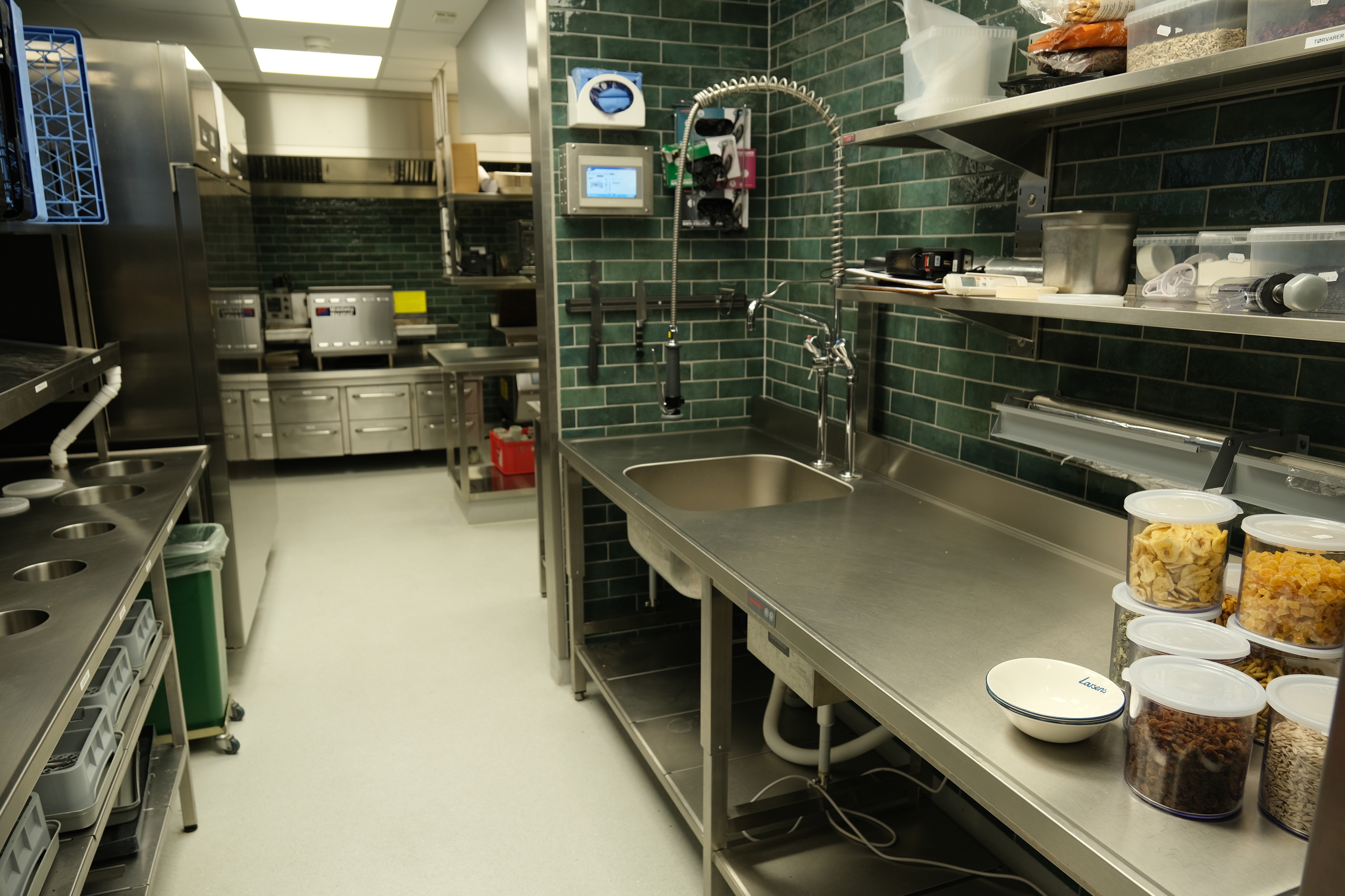 ”Det har fungeret ekstremt godt, at vi har kunnet køre processen her hos os, fordi Thomas har kunnet sidde her og tegne. Og samtidig har vi kunnet gå hen og se på de løsninger, vi allerede har i huset og haft noget helt konkret at tale ud fra og både fået vendt, hvad vi var glade for, og hvad der skulle være anderledes, og vi har haft et supergodt samarbejde, og er nået frem til et rigtig godt resultat”, lyder det fra Daniel, der blandt andet fremhæver de vandkølede softicemaskiner, der er meget støjsvage og specialløsningen til sortering af affald, hvor det er nemt og overskueligt at sortere henholdsvis plast, metal, mad, restaffald og glas og porcelæn, der skal til deponi. Og også i opvasken er der leveret en løsning, der gør arbejdet nemmere, da der er huller, så knive, gafler og skeer sorteres og ligger i en kurv for sig allerede inden, de bliver vasket.