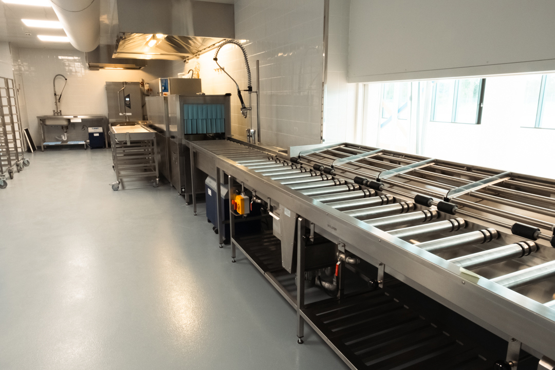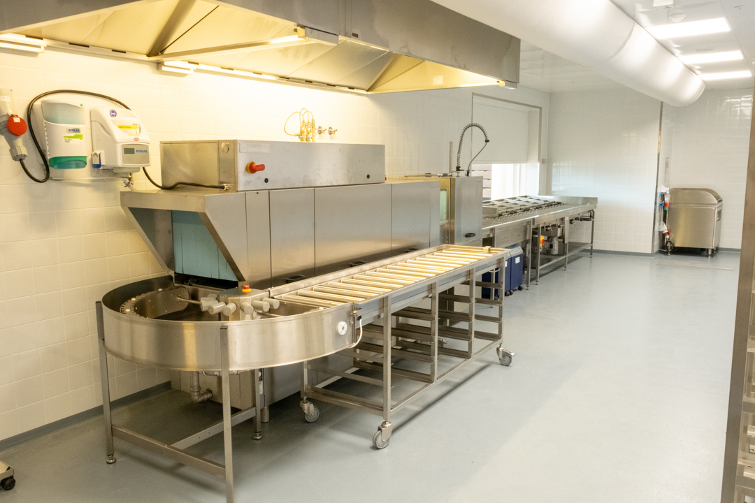 Mette Nielsen havde også en klar ide om, at hun gerne ville have en ergonomisk smart opvaskemaskine, for i sådan et stort produktionskøkken er der ikke kun portionerne, der er store - der er også masser af opvask. Og hun kunne konstatere, at der tidligere blev løftet, slæbt og flyttet store mængder af opvask i løbet af en arbejdsdag, når de mange tallerkener og øvrige service skulle på og af vogne og over på opvaskebakker for derefter at blive løftet af bakkerne igen og sat på plads– og det skulle være anderledes.