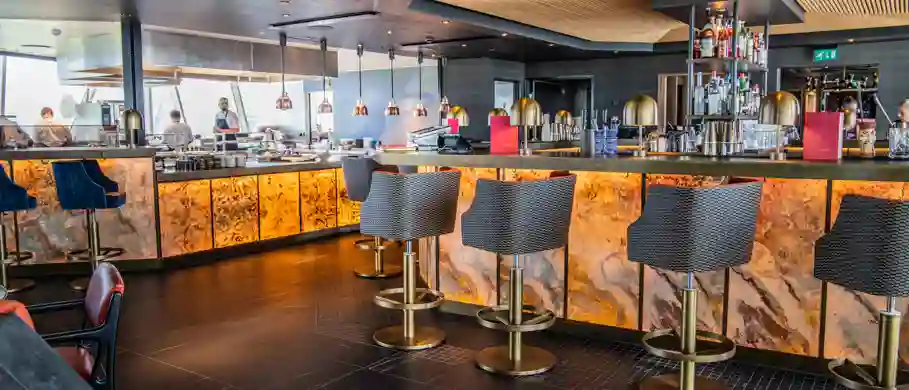 ”Som aftenen skrider frem bliver der skruet ned for lyset og op for musikken, og tanken er, at vores gæster både skal kunne starte og slutte aftenen her med at gå i baren"